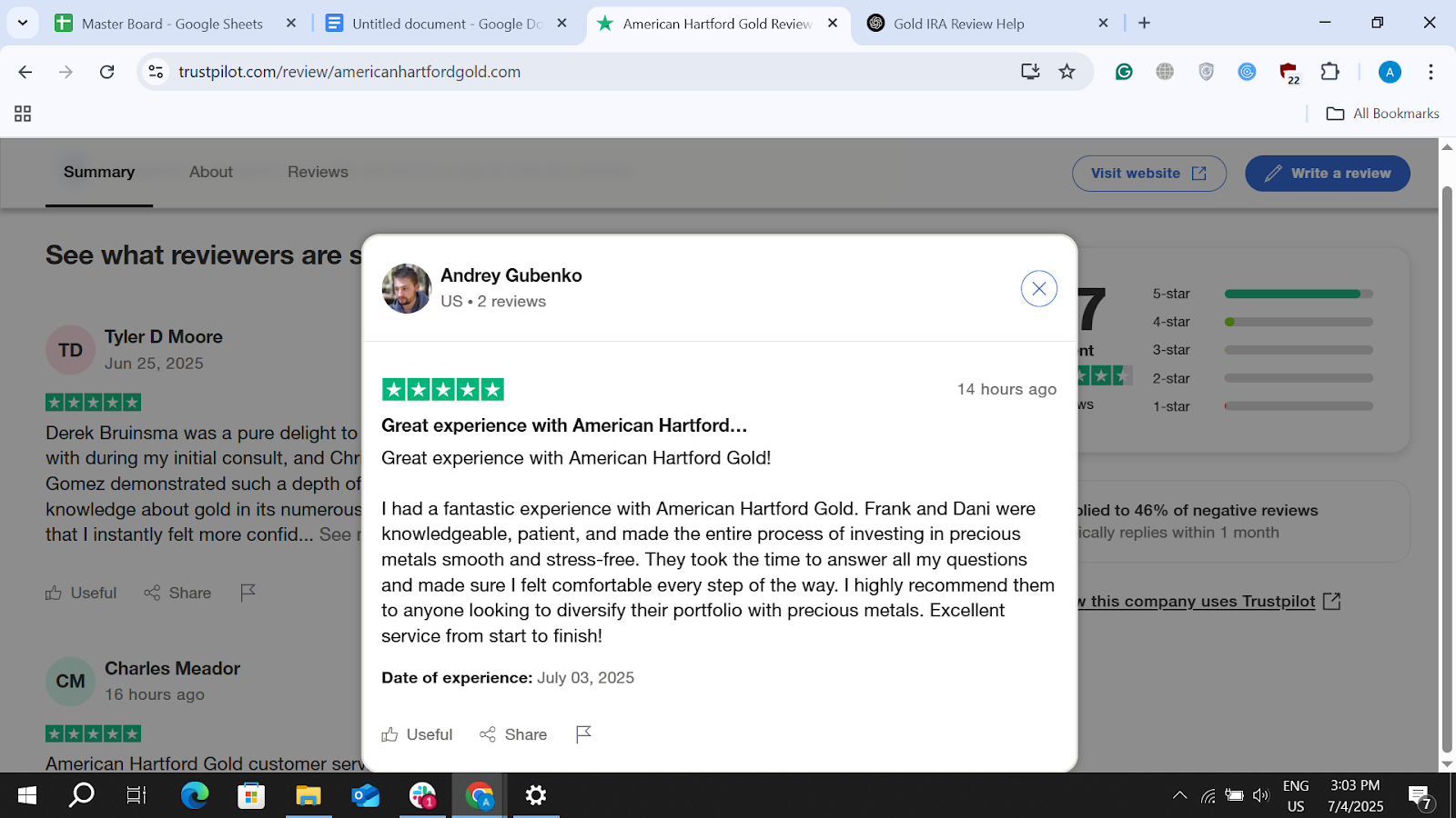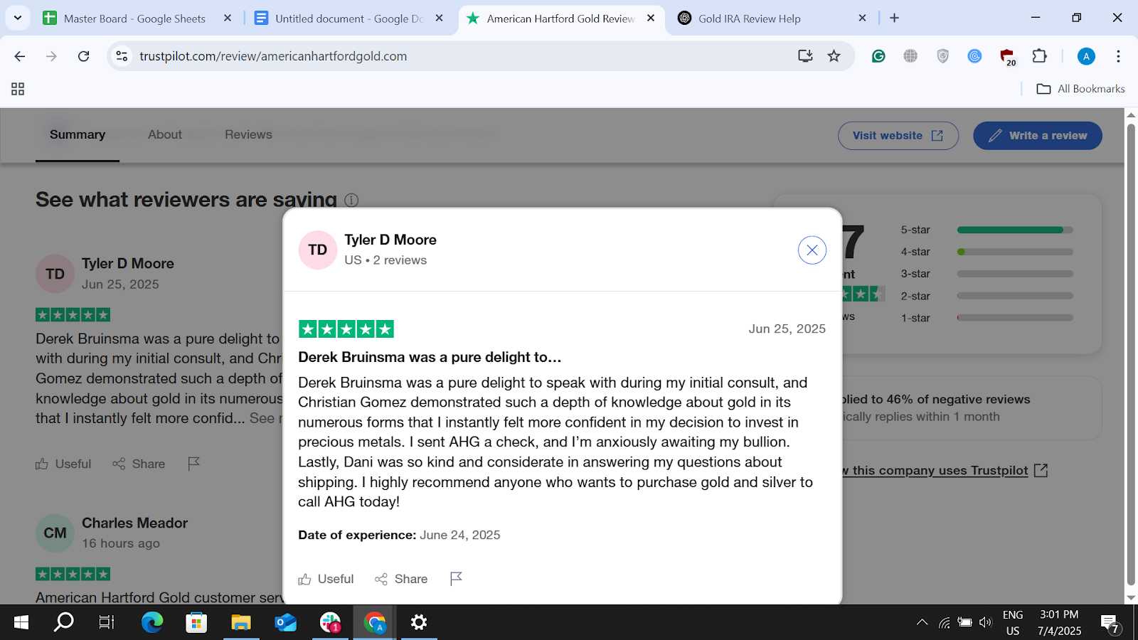 On Trustpilot, AHG holds a strong 4.7 average across approximately 1,400-1,500 reviews. Recent praise focuses on helpful, patient staff and seamless investing processes:
