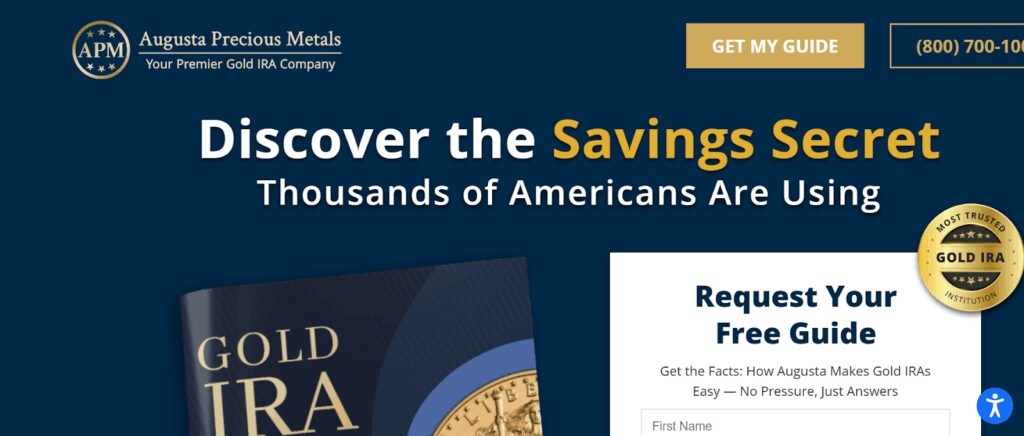 Founded in 2012 and headquartered in Casper, Wyoming, Augusta Precious Metals specializes exclusively in gold and silver IRAs. The company holds an A+ rating from the BBB and AAA from the Business Consumer Alliance, earning multiple “Best Overall Gold IRA Company” designations from Money Magazine between 2022 and 2025.
