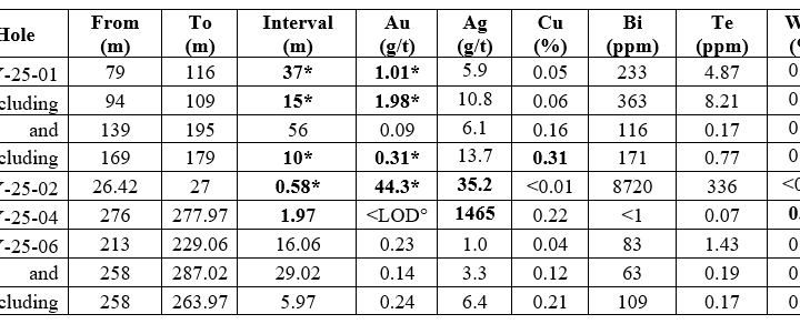 Drill hole RY-25-04 bottomed in 1,465 g/t silver over 1.97 metres Multi-element geochemical analysis is
