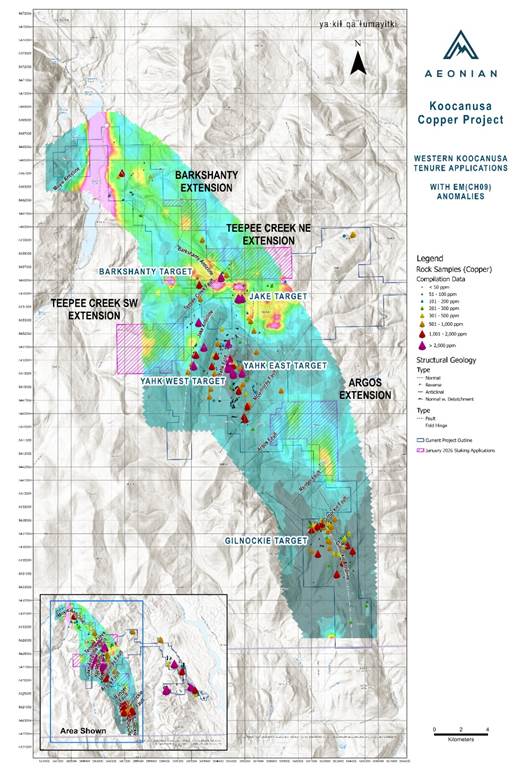 VANCOUVER, BC / ACCESS Newswire / January 19, 2026 / Aeonian Resources Ltd. (“Aeonian” or the “Company”) (TSX.V:ALTN) is pleased to announce a strategic expansion of its Koocanusa Project in southwestern British Columbia through applications for four additional contiguous mineral tenure blocks. The newly staked ground captures interpreted extensions of multiple sediment-hosted copper targets and will significantly strengthen Aeonian’s control over a district scale copper system ahead of its inaugural drill program planned to commence March 2026.