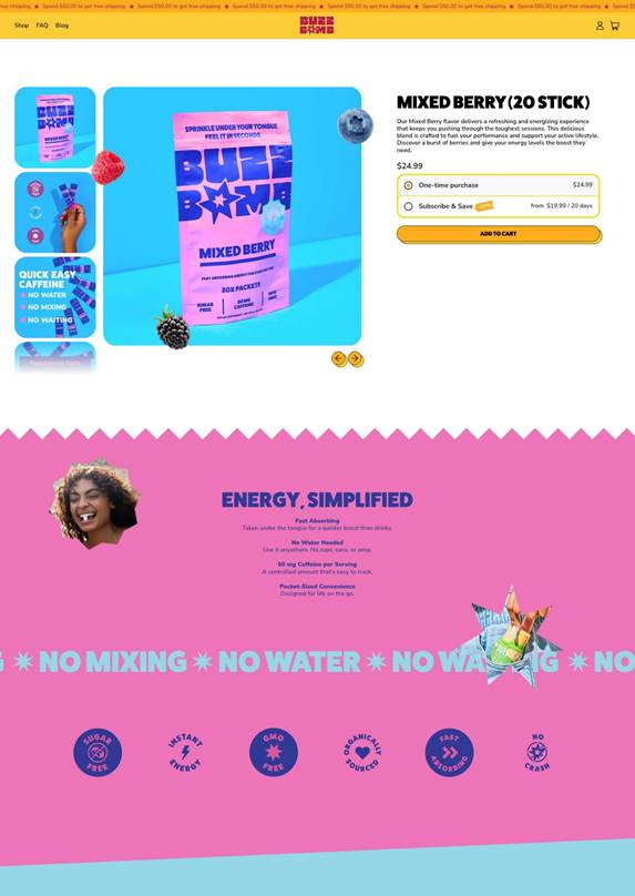 New streamlined, mobile-optimized shopping experience, allows consumers to purchase BUZZ BOMB™ directly, access exclusive promotions and engage with the brand through educational and lifestyle content highlighting the benefits of sublingual delivery