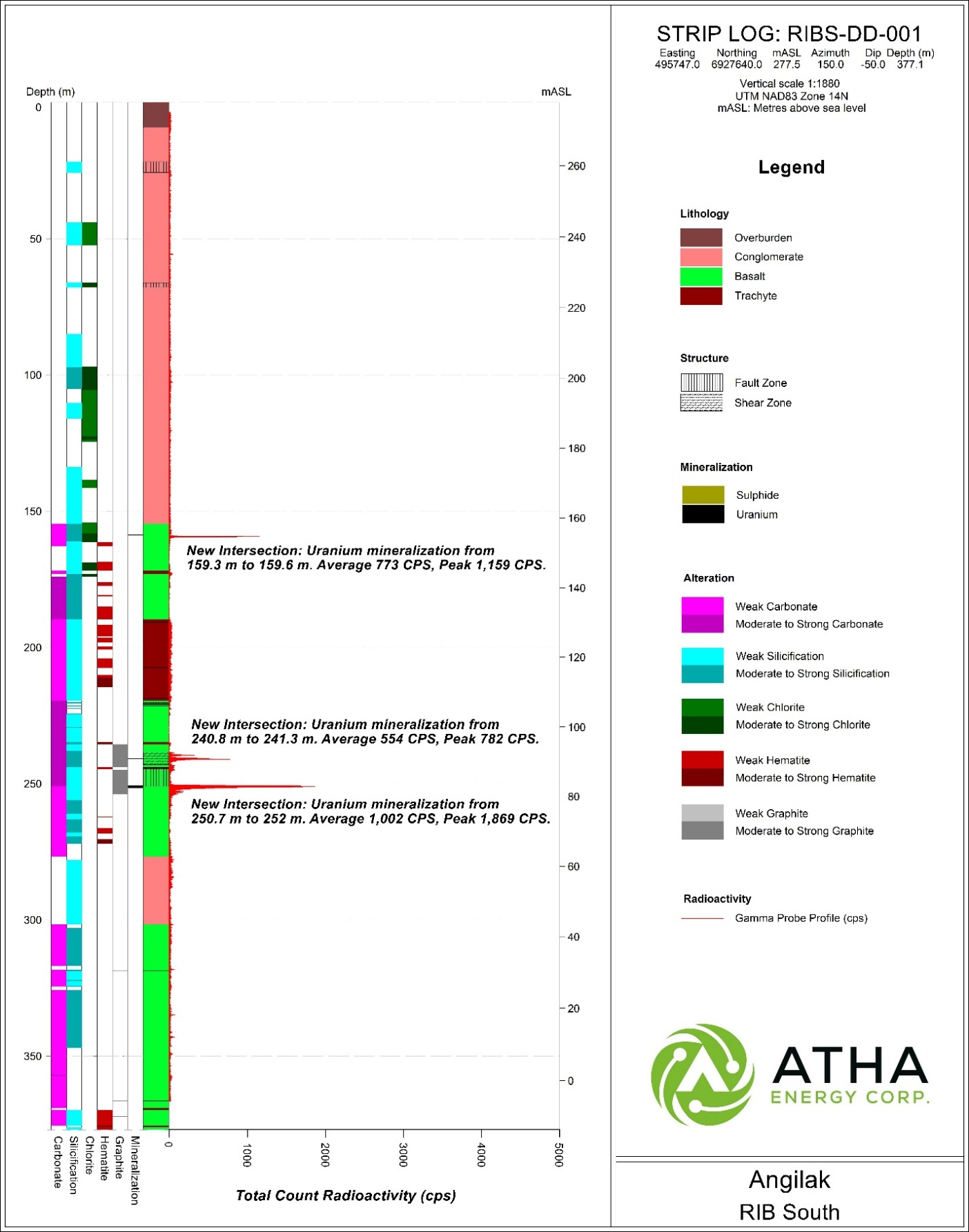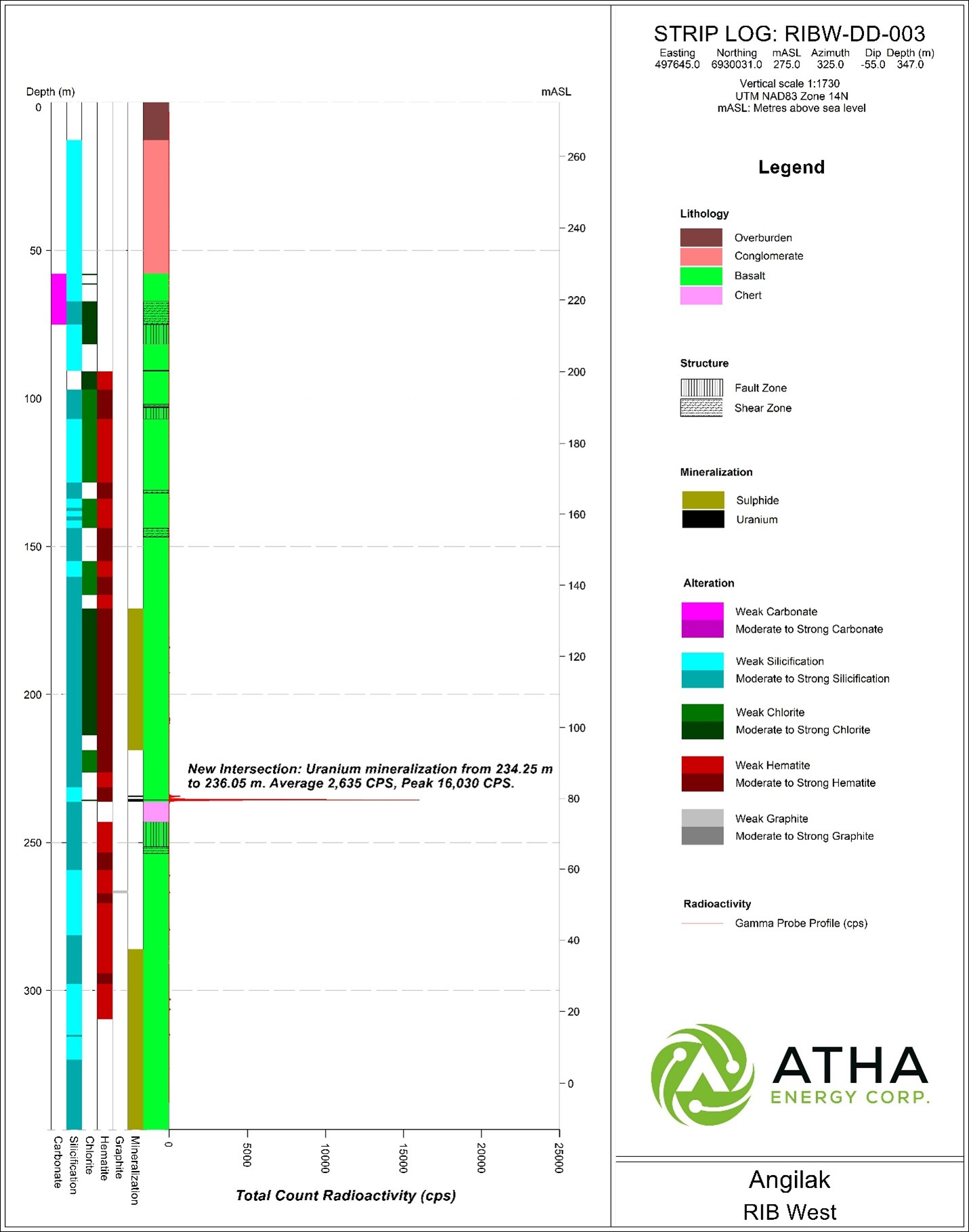 ATHA Energy Makes Major New Discovery Along the Rib Corridor; Drills Best Exploration Hole to Date at The Angilak Uranium Project Intersecting 26.3 M of Composite Uranium Mineralization