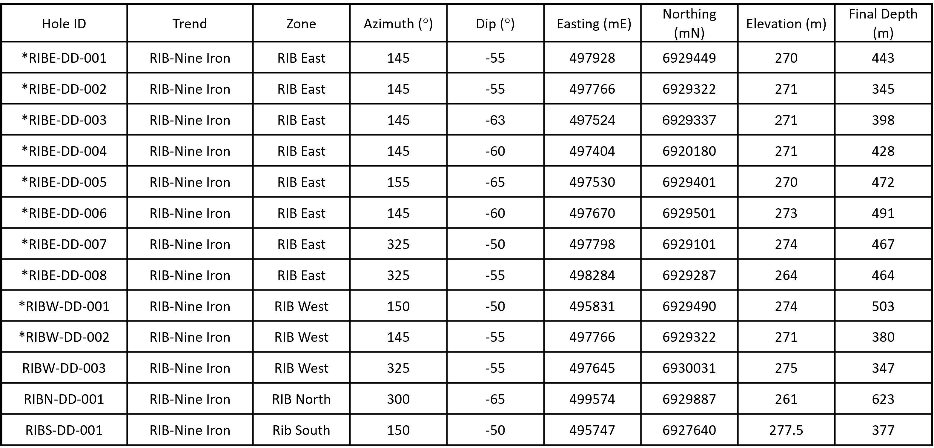 Two additional drillholes were completed, RIBN-DD-001 and RIBS-DD-001, representing two new discoveries at RIB North and RIB South, both situated along the eastern limb of the MRC (Figure 2).