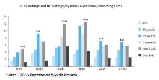 As a result, women and people of color are beginning to exceed their proportional representation in streaming films/shows as services increasingly focus on producing content that resonates with their diverse audiences to grow and retain their subscriber numbers.