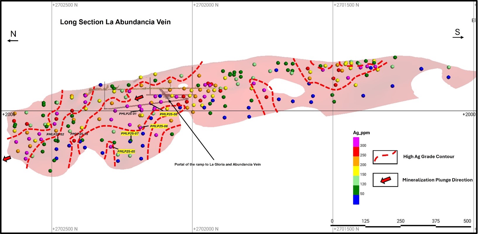 Hole PMLP 25-08 at Abundancia: 463 g/t Ag and 0.61 g/t Au over 4.00 metres true width