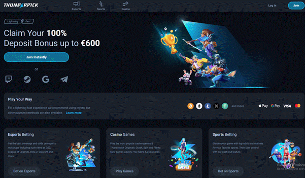 Thunderpick’s 100% welcome bonus up to €600. These offers allow players to explore the platform without significant initial investment, with additional incentives like the €2,000,000 Drop & Wins Tournament adding value. -