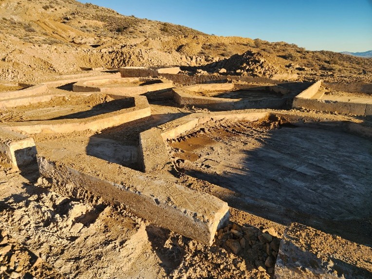 Mining at Colosseum was suspended in the early 1990s, after which the historic processing plant pad was covered and preserved beneath overlying material. A Lidar survey completed by Dateline in 2025 successfully delineated the location of this historic plant footprint and excavation confirmed the presence of intact concrete foundations.