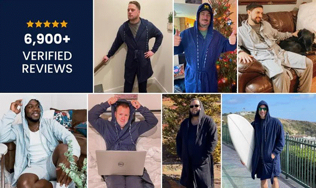 All customers’ reviews state that DudeRobe stands out as the ultimate choice for men who value both comfort and confidence in their daily routine. Unlike traditional robes that feel oversized or outdated, DudeRobe offers a structured, modern fit that looks sharp and feels natural, more like your favorite hoodie than a bulky bathrobe. It’s designed for men who want to command their mornings, unwind in style, and move effortlessly between home, gym, and casual outings without changing their outfit. With its tailored cut and sleek design, DudeRobe lets you relax without sacrificing style or confidence.