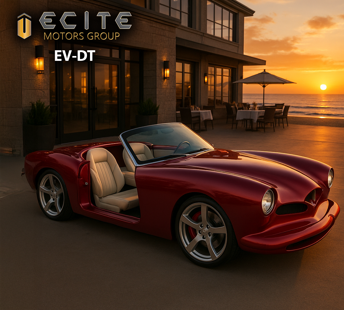 E-Cite’s EV-DT “Dutch Touch” retains the spirit of the original, reimagined as a cutting-edge EV that utilizes the company’s proprietary aluminum chassis and driveline architecture, shared with the EV-GT and EV-C3 models. This allows for breathtaking performance, ultra-responsive handling, and a design faithful to its lineage yet optimized for modern efficiency and safety.