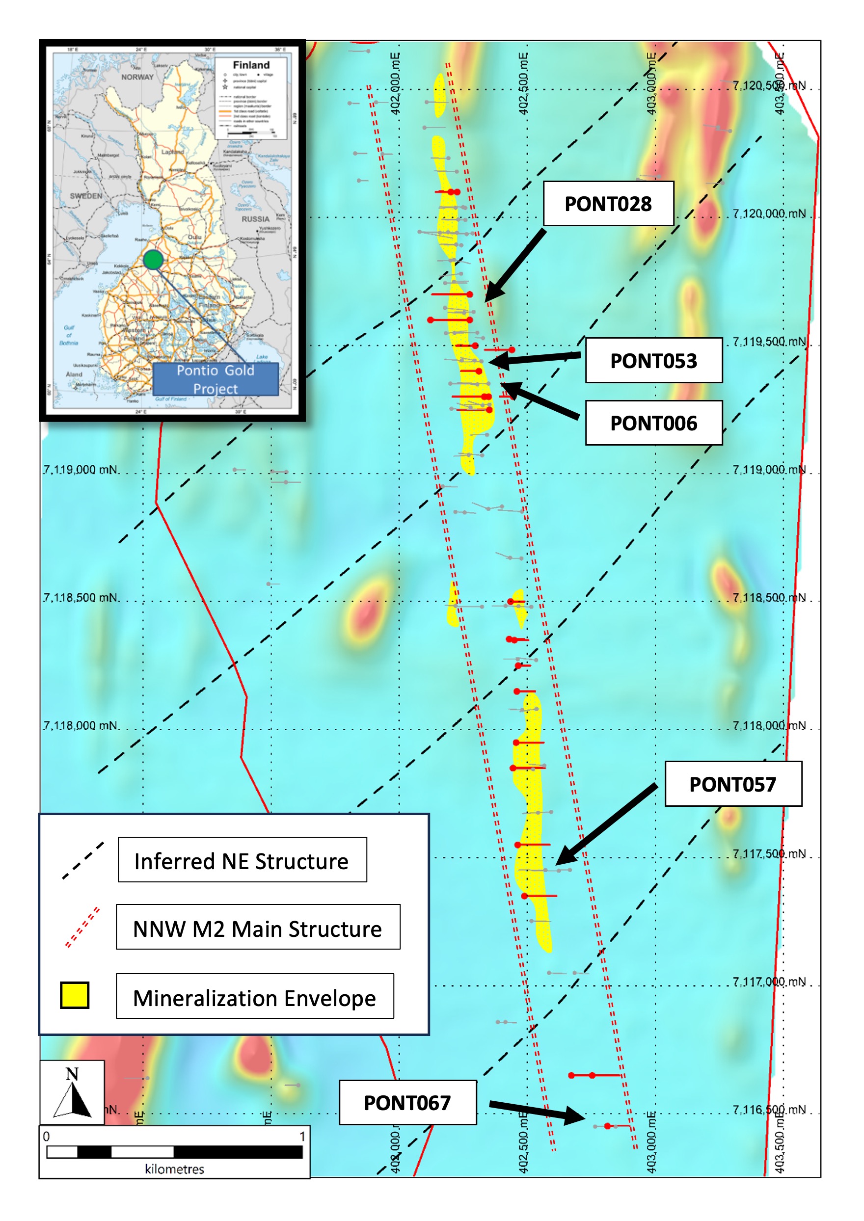 “With our recent public listing and the strategic investment from Eldorado Gold, we are now fully funded to accelerate the development of Pontio. This infill programme is a critical step in our transition from discovery to resource definition. The M2 Trend has already demonstrated remarkable scale and consistency near-surface, and we are confident that this systematic drilling will further develop Pontio’s potential to become a major gold deposit in Finland.”