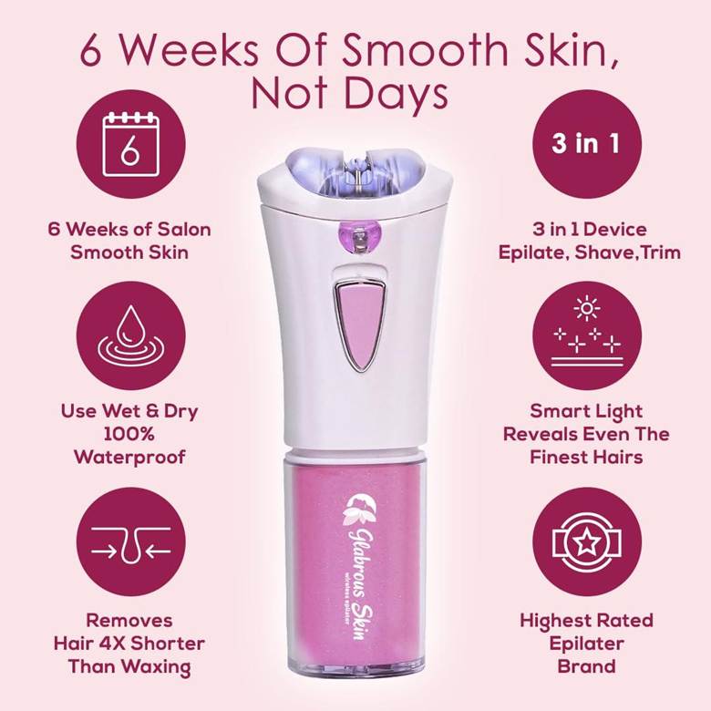 According to several customer reviews, Glabrous Skin Hair Remover offers professional-grade epilation for improved skin health and long-lasting smoothness by fusing state-of-the-art technology with everyday beauty wellbeing. This stylish, portable device removes hair from the follicle using cutting-edge “Root-Out” technology, resulting in an exfoliating effect and increased self-confidence.