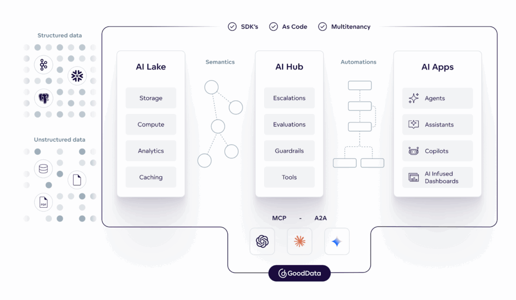 Scalable Architecture: Multitenant and deployment-flexible, GoodData supports AI expansion across enterprise units and customer bases.