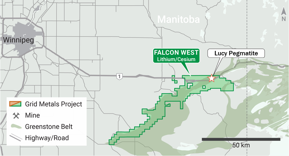 Robin Dunbar, Grid’s CEO & President, stated “Grid believes Falcon West represents a unique opportunity for the company to advance a high-demand and rare critical metals project in southeastern Manitoba, in an area with excellent infrastructure. It is rare to find a critical metals project with such an attractive combination of resource scarcity and demand. Our goal at Falcon West is to define a cesium deposit of importance to the global cesium industry.”