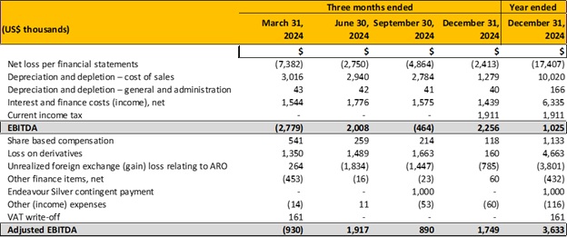 Silver equivalents (AgEq) are calculated using 85.93:1 (Ag/Au), 0.02:1 (Ag/Pb) and 0.03:1 (Ag/Zn) ratio for YTD 2025 and an 84.48:1 (Ag/Au), 0.03:1 (Ag/Pb) and 0.05:1 (Ag/Zn) ratio for YTD 2024, respectively.