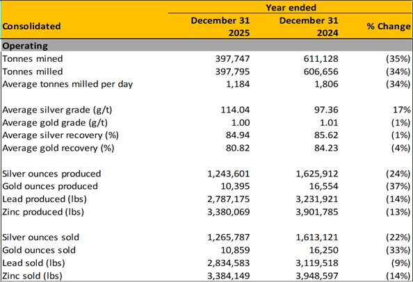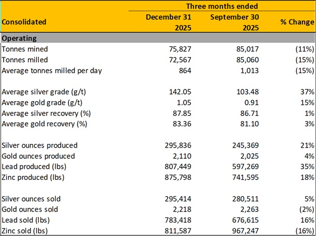 James Anderson, CEO & Chairman, said, “The fourth quarter saw notable production increases across all metals produced; output for silver, gold, zinc and lead were all higher, reflecting the impact of improving mine development and better operational discipline. For Q4 2025, revenue was up by 40%, and mine operating cashflow before taxes* was up over 1800% vs the previous quarter; this highlights the advantageous position we have built as a producer of silver and gold during a rising market for precious metals. We are currently working to fully integrate our newly acquired Bolanitos gold-silver mine into our operations; having closed the Bolanitos acquisition on January 15th, 2026, we eagerly look forward to the public release of our Q1 financial results, projected within the next 30 days; this will be the first time investors will be able to see the impact of production from Bolanitos combined with this new silver and gold pricing environment.”