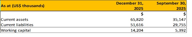 Working capital is a non-IFRS measure that is a common measure of liquidity but does not have any standardized meaning. The most directly comparable measure prepared in accordance with IFRS is current assets net of current liabilities. Working capital is calculated by deducting current liabilities from current assets. Working capital should not be considered in isolation or as a substitute for measures prepared in accordance with IFRS. The measure is intended to assist readers in evaluating the Company’s liquidity.