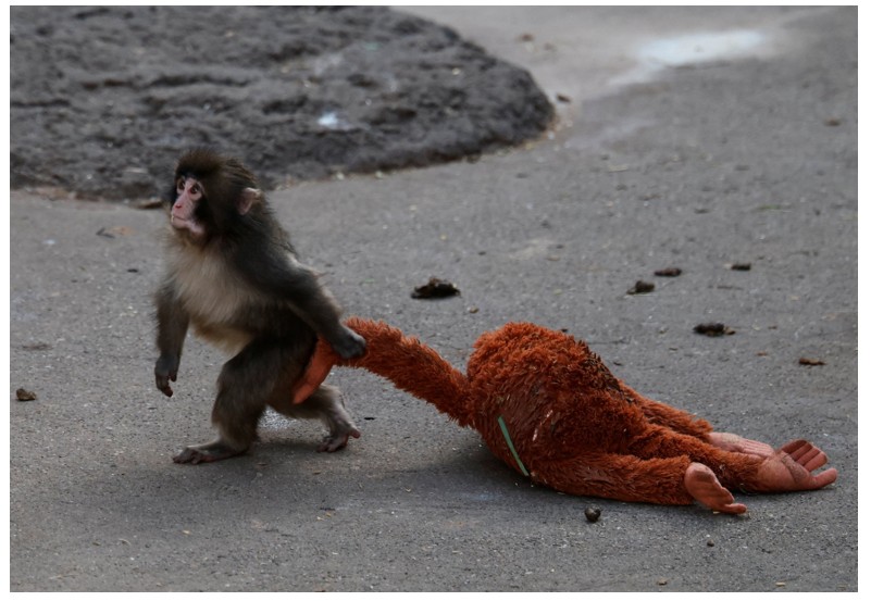 Senior Primate Keeper: “Without a mother to cling to, baby macaques can develop anxiety and fall behind physically. We gave him the stuffed orangutan as a substitute, to help him feel safe and to build his strength. We never expected him to love it the way he did. He carried it everywhere. He slept with it. When other monkeys were unkind to him, he would go back to Ora-mama. She was his anchor. We are grateful he always had her.”