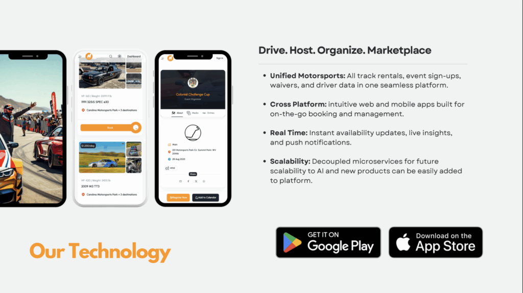 The team isn’t stopping at events. Kerbz is laying the groundwork for an AI coaching marketplace, a peer-to-peer vehicle sharing system, and a motorsports-native social graph – tools that will make track life smoother, faster, and more connected.
