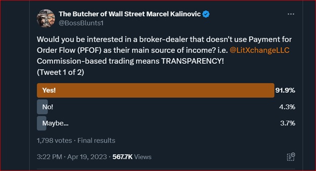 “FTX created BILLIONS of tokenized stocks backed by NOTHING, allowing short sellers to manipulate stock prices when there were no shares available to short, and Bittrex did the same. BlockFi and Celsius lied to retail and froze their withdrawals. Now Robinhood is pushing token-backed securities as if it’s good for retail investors. Their #1 revenue source is Payment for Order Flow from the same institutions that benefit from tokenized stocks .”