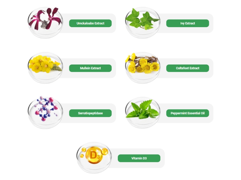 Mucus Breakdown: Ivy Leaf Extract and Serratiopeptidase are known for their potential to reduce mucus thickness, making it easier to expel.