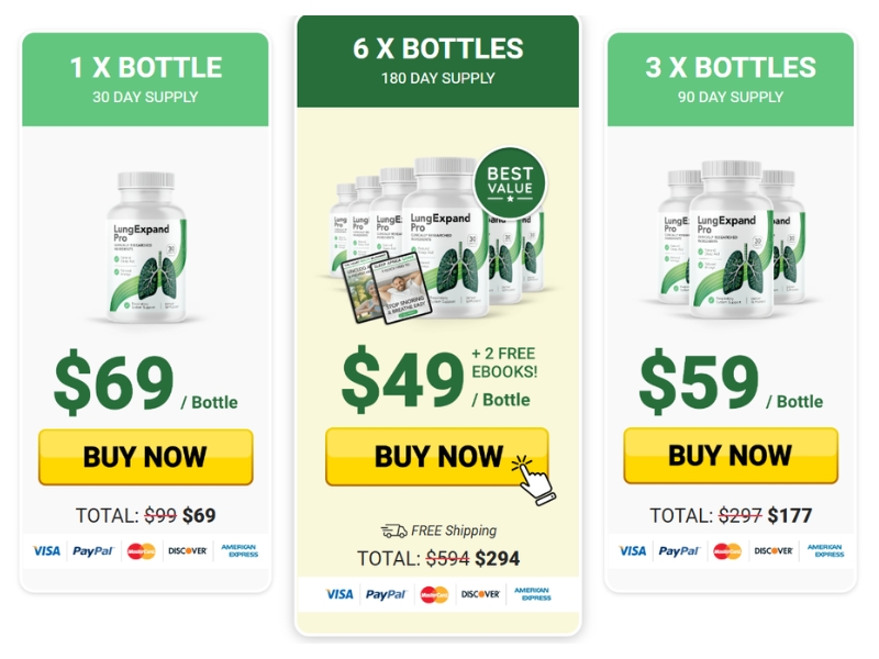 The six-bottle package is the best value, with each bottle priced at only $49 and a total cost of $294. This package also comes with two free eBooks to help enhance your lung health journey.