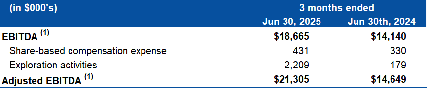 “Adjusted EBITDA” represents EBITDA, adjusted to exclude exploration activities, share-based compensation and change in provision for reclamation and rehabilitation.