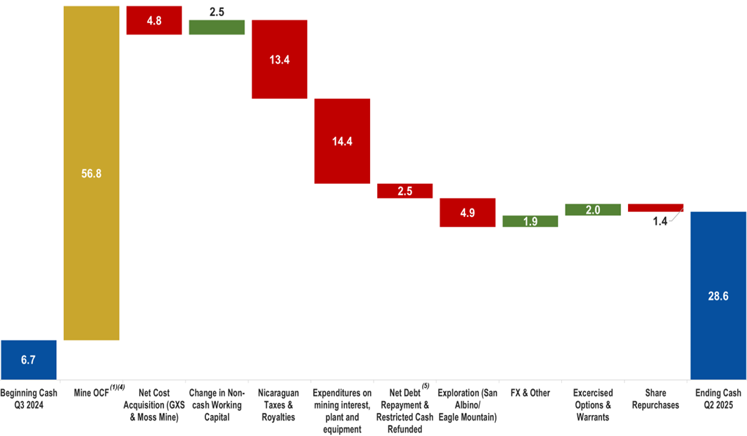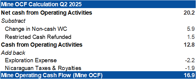 Q2 2025 – Mine OCF Calculation and Cash Reconciliation (in $ million)