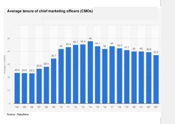 As a result, the average marketing executive’s job tenure is relatively short – 2-4 years compared to that of their C-suite bosses.