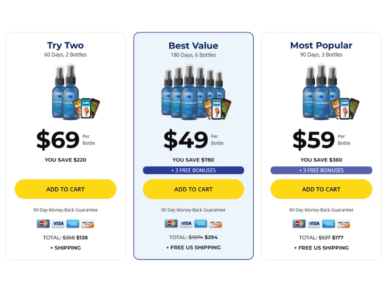 NeuroQuiet is only sold through its official website. Purchasing from third-party vendors or unauthorized online marketplaces may increase the risk of receiving counterfeit, expired, or improperly stored products. For safety, authenticity, and eligibility for any guarantees or bonuses, it is recommended that consumers buy directly from the manufacturer’s official website.