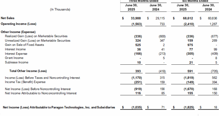 Company Announces Earnings Results Paragon Announces Resolution of Outstanding Litigation — Focus Shifts to Progress.