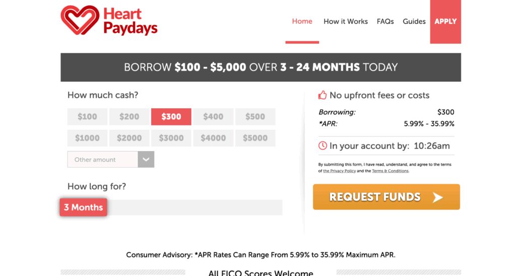What’s more, Heart Payday offers affordable personal loans without credit checks. The affordability is due to the low interest rates, no upfront fees, and no associated hidden costs. Heart Paydays provides one of the best lending platforms and has flexible repayment terms.