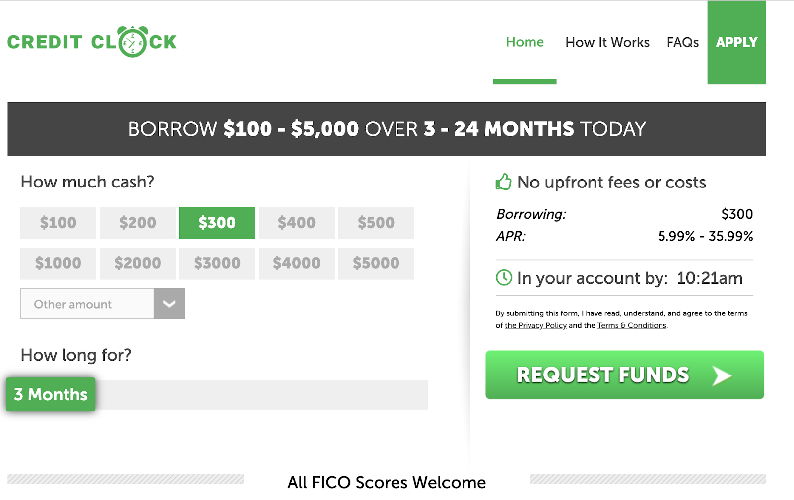 Credit Clock stands out as a broker that provides access to personal loans with no credit checks. This means irrespective of your credit scores, you can confidently apply for a personal loan to address your financial needs. With lending capabilities reaching up to $5,000, Credit Clock offers a reliable platform for obtaining a loan without fretting over your credit history.