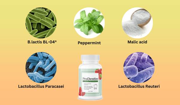 ProDentim combines a thoughtfully selected blend of natural and probiotic-based ingredients, each chosen for its role in supporting oral health. The primary focus is on balancing the oral microbiome, helping to address the root causes behind common dental concerns like bad breath, gum irritation, and plaque accumulation.