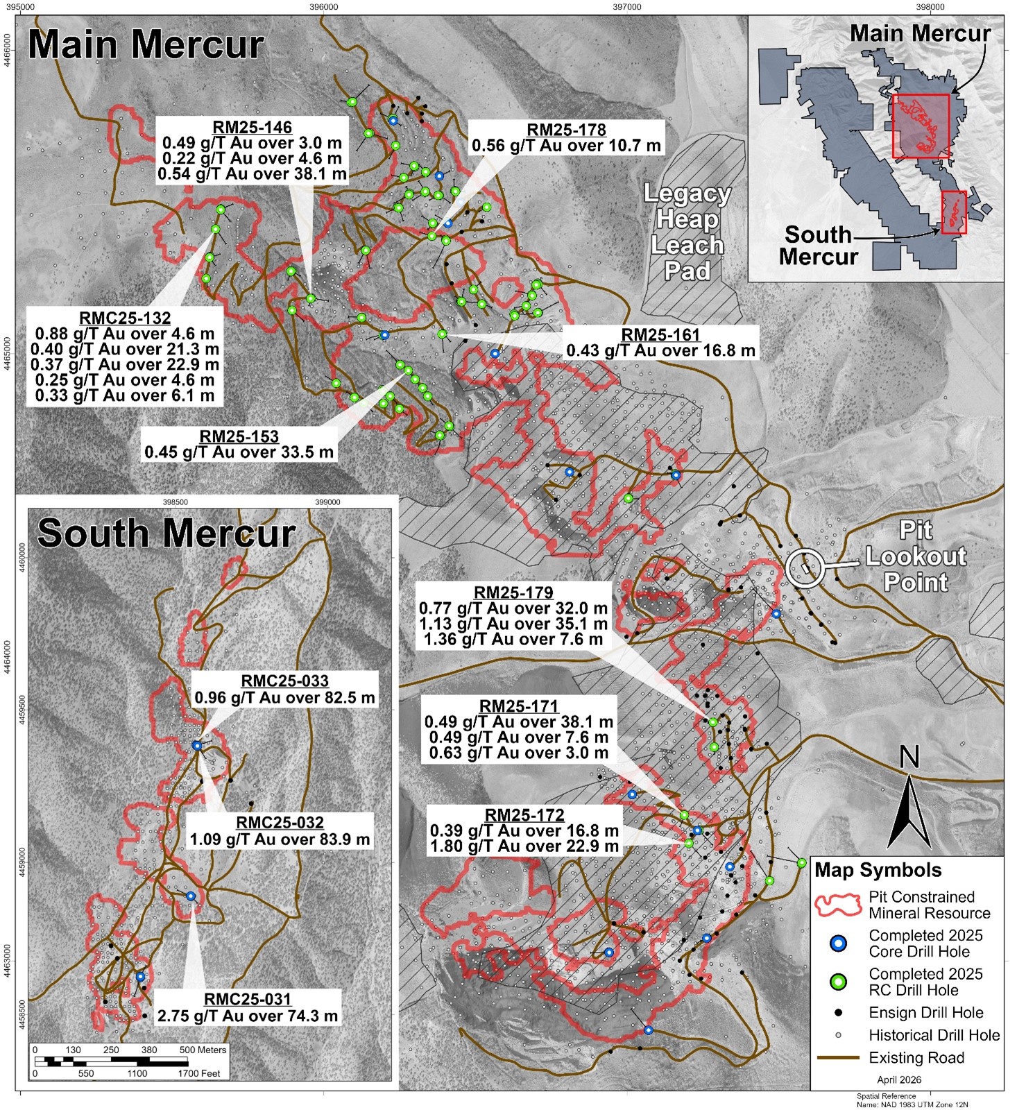 Figure 1: Mercur Drill Plan Map April 7th, 2026