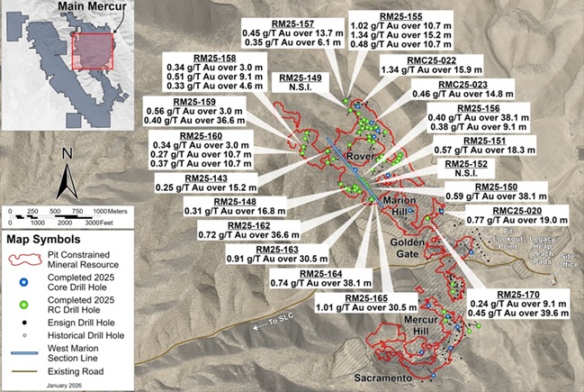 Figure 1: Main Mercur Drill Plan Map – February 10th, 2026 Results