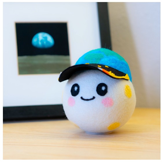“Rise” – a round white plush with a hat featuring the Earth and a galaxy-and-rockets brim – was inspired by the iconic Earthrise photograph taken during Apollo 8, a moment Koch noted mirrors the spirit of the Artemis II mission itself.