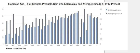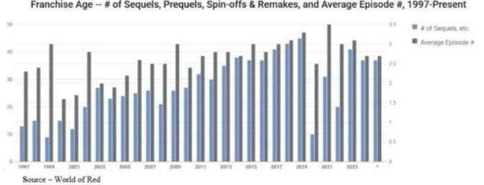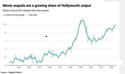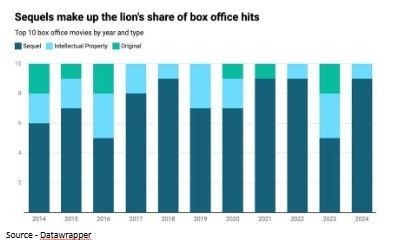 For example, according to Ampere Analytics. two years ago, sequels made up less than five percent of the movies and shows released yet they captured 45.8 percent of the cinema box office and new subscriptions Last year, the company noted that more than two-thirds of the top 100 movies and shows were based on existing ideas and IP.