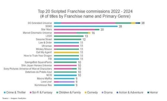 Despite the overall downturn in scripted content, commissions based on existing franchises have maintained a steady share of about 20 percents of the greenlighted projects.