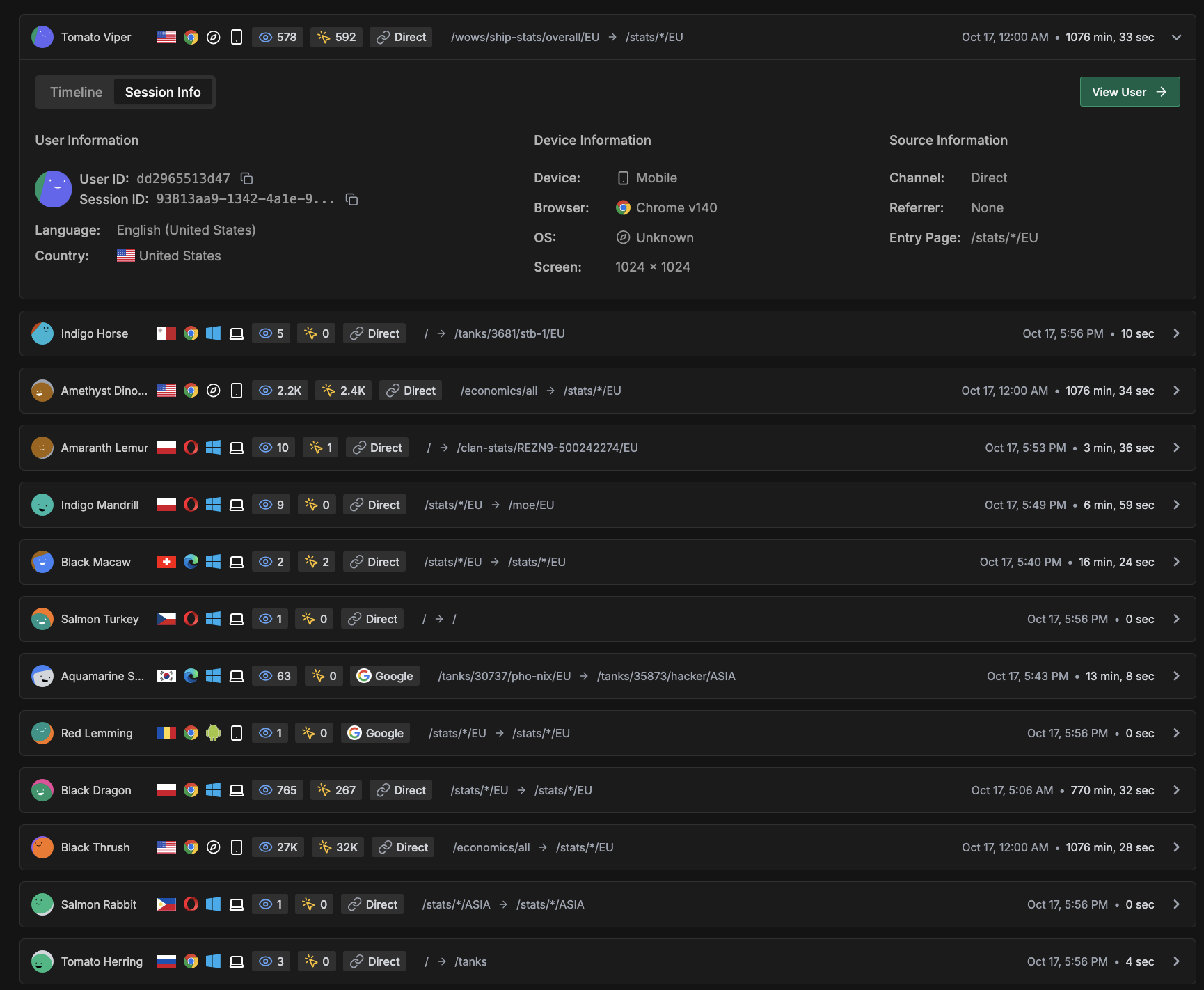 Session replay: Privacy‑aware replays with event timelines.