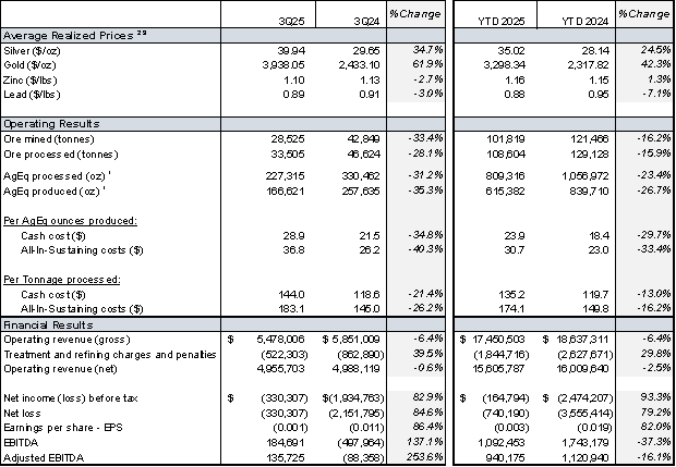 To improve the accuracy and presentation of AISC calculations, Silver X refined the composition of General & Administrative Expense in sustaining cost, excluding discretionary costs for business development, investor relations and share-based compensation. For comparative purposes, the prior period was recalculated based on the revised methodology. AISC for the nine months ended September 30, 2025, was $30.7 per AgEq ounce, representing a 33% increase compared to $23.0 for the same period in 2024, and a 40% increase from $26.2 in 3Q24 to $36.8 in 3Q25.