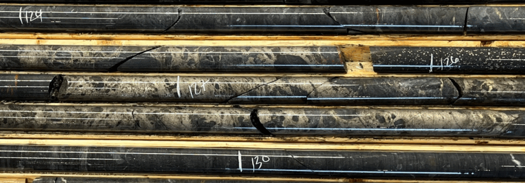 Figure 1. DDH GW25-16 Pyrrhotite & Chalcopyrite Mineralization From 124.6 to 129.0 Meters