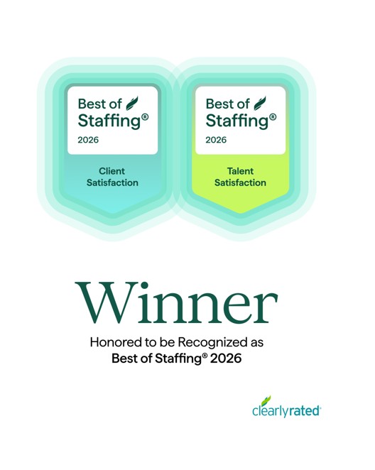 ClearlyRated’s Best of Staffing® Award is the only award in the U.S. and Canada that recognizes staffing agencies that have proven superior service quality based entirely on ratings provided by their clients, placed talent, and internal employees. Award winners are showcased by city and area of expertise on ClearlyRated.com-an online business directory that helps buyers of professional services find service leaders and vet prospective firms with the help of validated client ratings and testimonials.