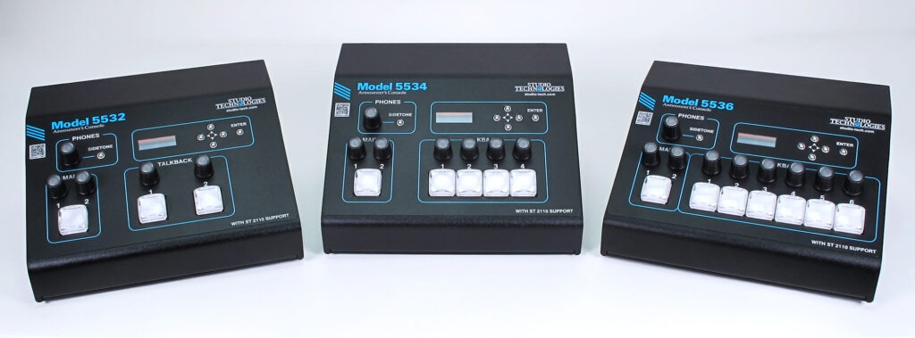 BARCELONA, JANUARY 13, 2026 – Manufacturer of high-quality audio, video, and fiber-optic solutions, Studio Technologies’ newest announcer consoles will be featured at ISE 2026 (Stand 4K800) and are compatible with the industry’s most widely used audio-over-IP (AoIP) protocols. The latest announcer consoles, now available for shipping, each offer advanced features but differ in the number of talkback sender (output) channels, with the six-talkback-channel Model 5536, four-talkback-channel Model 5534, and two-talkback-channel Model 5532.