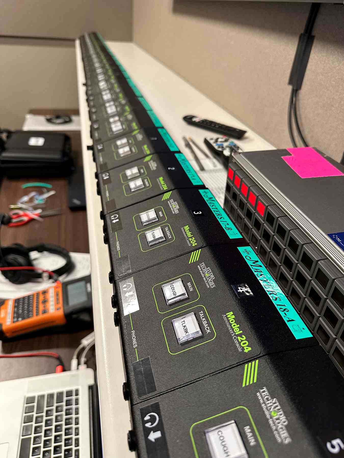 Today, Doss personally owns an extensive Studio Technologies inventory, including multiple Model 204, Model 205, Model 208 and Model 210 Announcer Consoles; Model 348 Intercom Stations, and various beltpack solutions suchas the Model 374A Intercom Beltpacks, Model 381 On-air Beltpacks and the Model 362 Listen-only Beltpacks, all carefully maintained and protected for travel and field use.