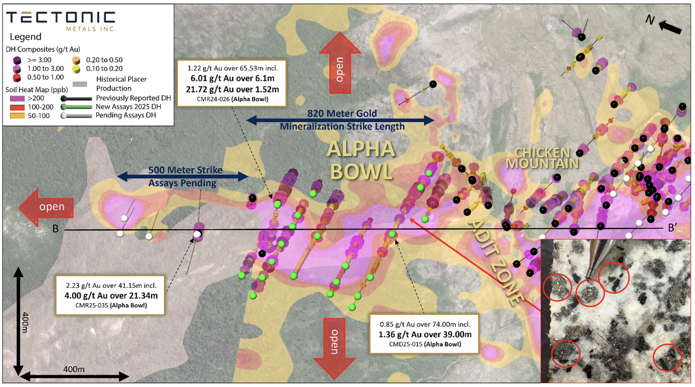 Tectonic Metals Drilling Transforms Alpha Bowl from Discovery to Emerging Large-Scale Resource Growth Opportunity: 820 m × 600 m × 400 m Gold Footprint Defined