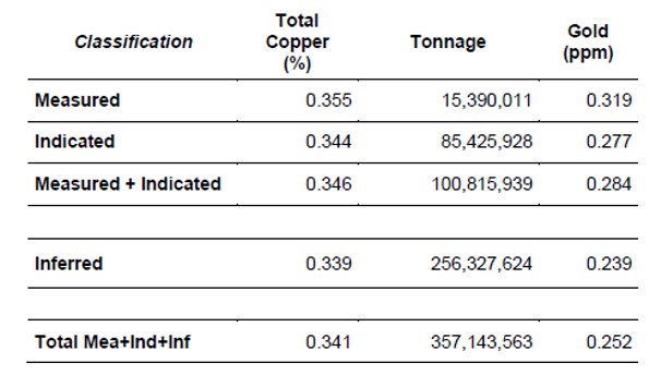 Note: 0.2% TCu cut-off for primary sulfides. Mineral resources that are not mineral reserves do not have demonstrated economic viability.