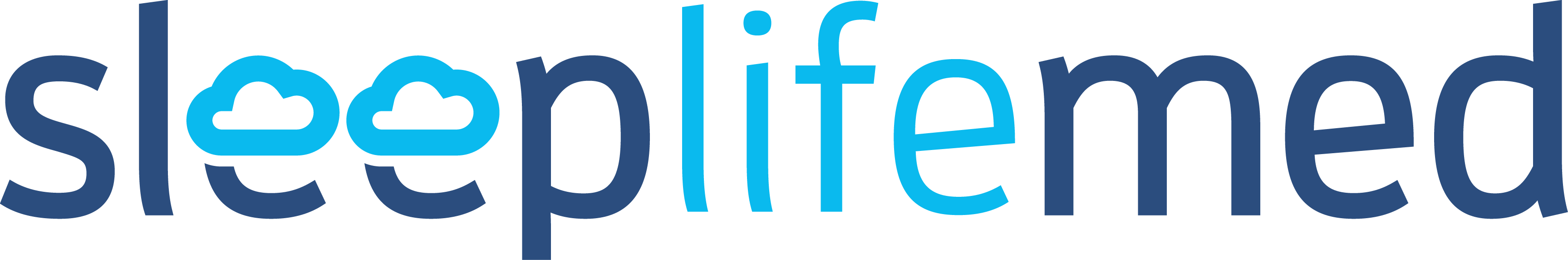 Sleep Life Med Logo in dark blue letters with the “e” of sleep in the shape of a cloud. The word “life” is in light blue.