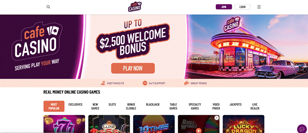 Cafe Casino offers a robust selection of games, ranging from popular slots to classic table games such as blackjack, roulette, and baccarat. There’s also a live casino option where players can interact with real dealers in real time, adding an extra layer of excitement. The casino’s game library ensures there is something for every type of player, from casual gamers to high rollers.