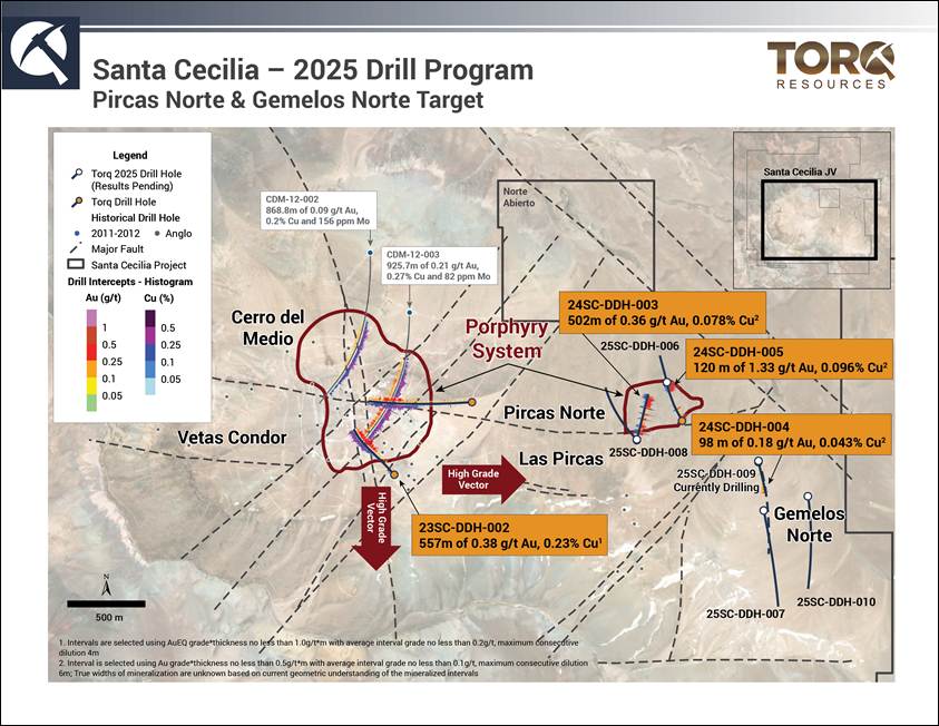 VANCOUVER, BC / ACCESS Newswire / May 26, 2025 / Torq Resources Inc. (TSX-V:TORQ)(OTCQB:TRBMF) (“Torq” or the “Company”) is pleased to provide an update on its ongoing drilling program at Santa Cecilia.
