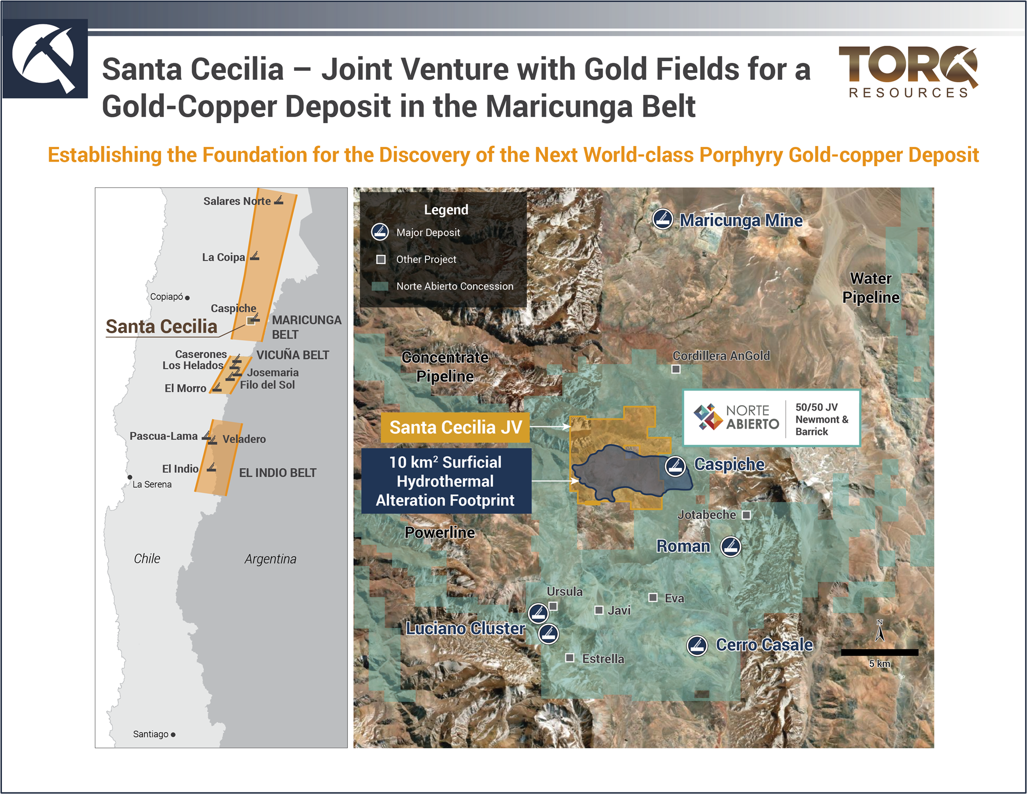 Shawn Wallace, CEO and Chair of Torq, states, “These results reinforce the scale of what we’re uncovering at Santa Cecilia. With Gemelos Norte now confirmed as our third discovery, we may be looking at a district-scale gold-copper system that remains wide open in multiple directions. The sheer size of these intercepts, combined with increasing grades, points to a project with significant potential. Our agreement with Gold Fields continues to validate this vision – their spend to-date of over $6 million of a possible US$48 million earn-in has already translated into a 10% vested interest, underscoring the confidence we share in the extraordinary opportunity this project represents.”
